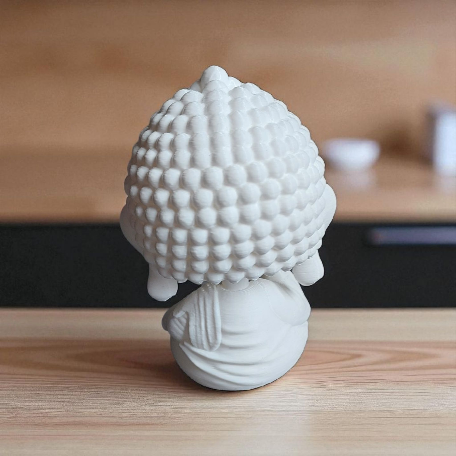 A finely detailed mini Buddha statue 3D printed with eco‑friendly PLA – perfect for meditation spaces, desk décor, or gifting.